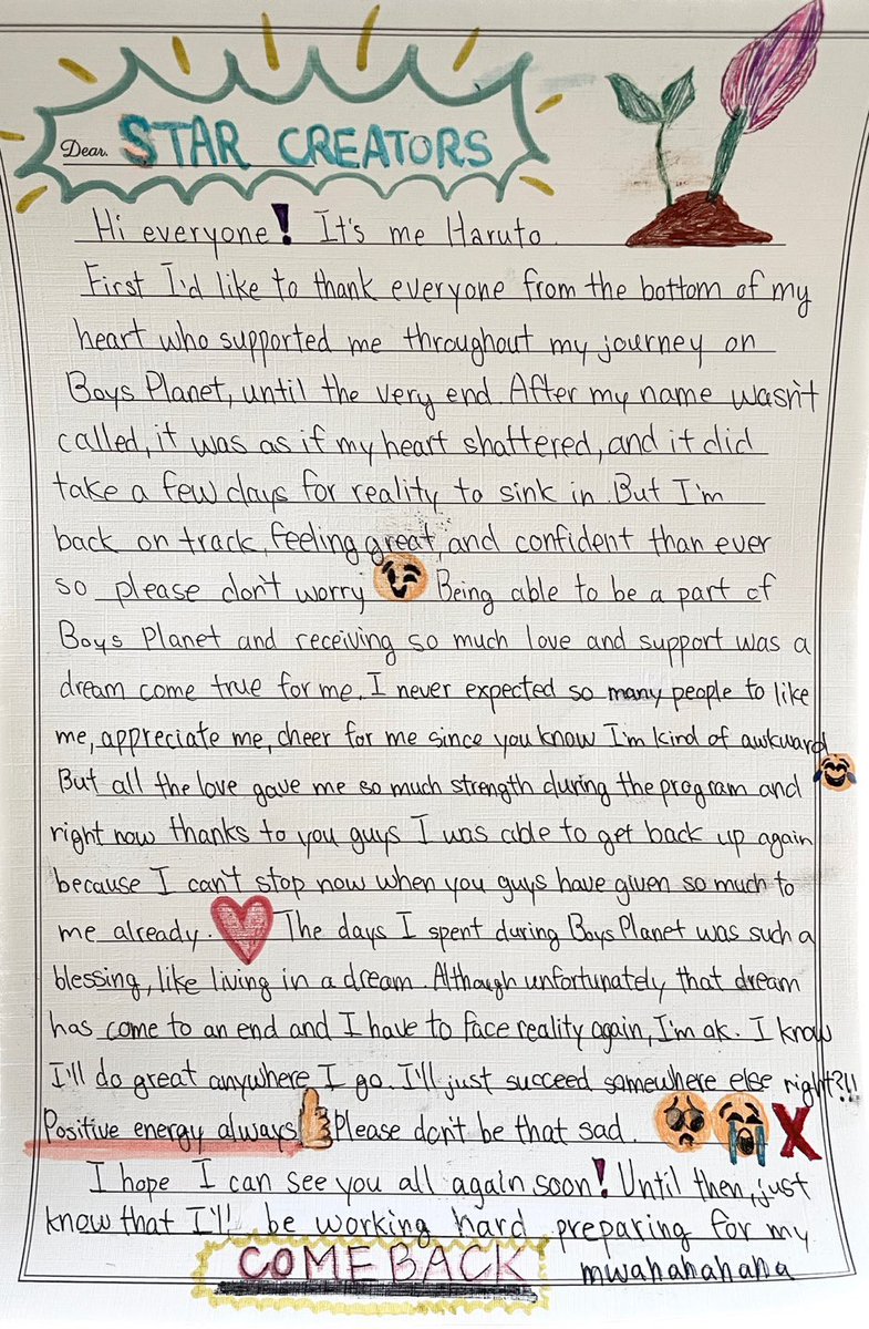 oh well. if anything its given us this amazing thank u letter from haruto https://pbs.twimg.com/media/FtpMo5NagAEvN0v.jpg