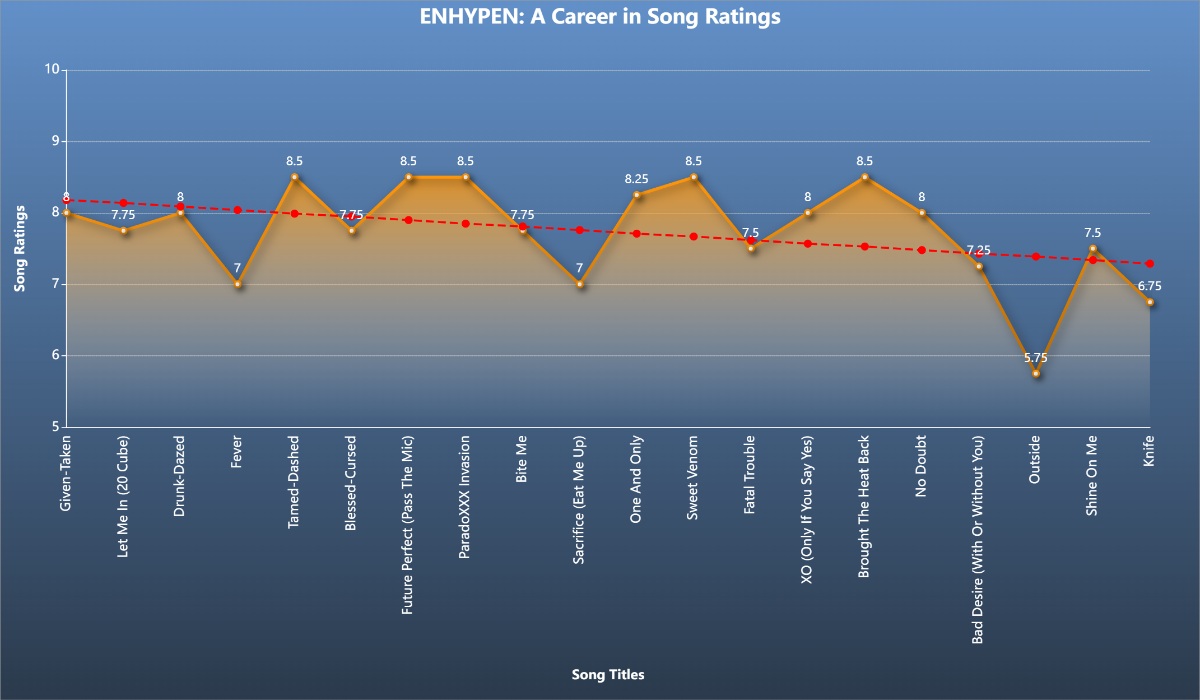 Ah, I was hoping Enhypen would get one of these. They were my ult group for almost two years, so I thought it might be fun to try and make one too. I’m really bad at rating songs though lol, so this was kind of difficult.